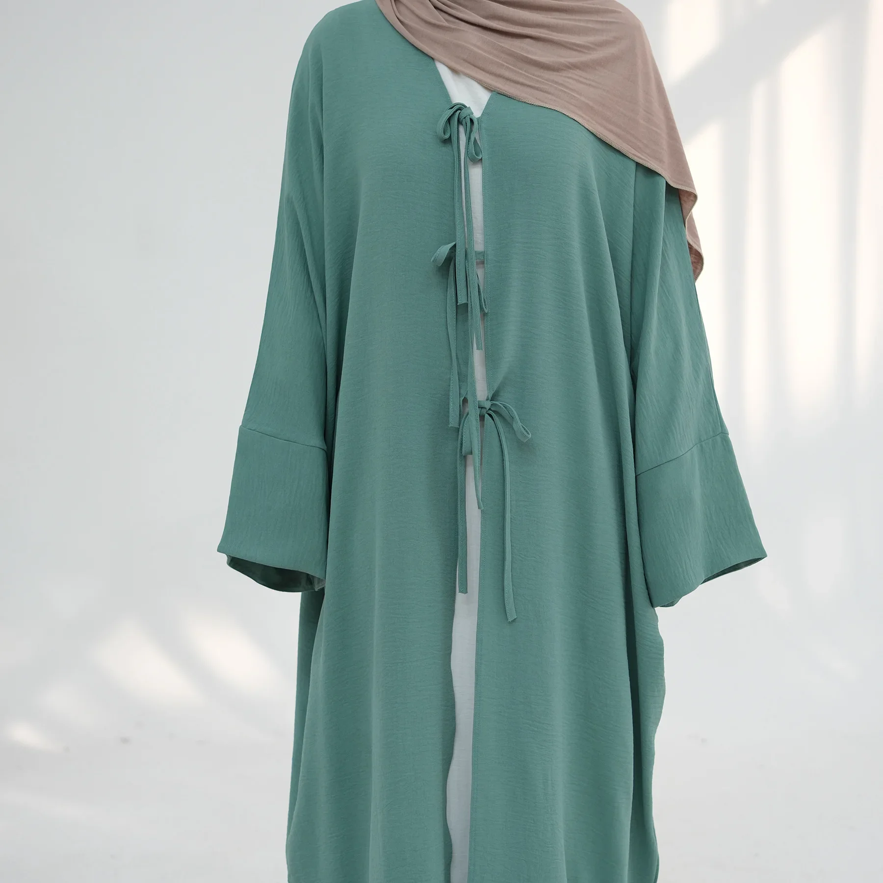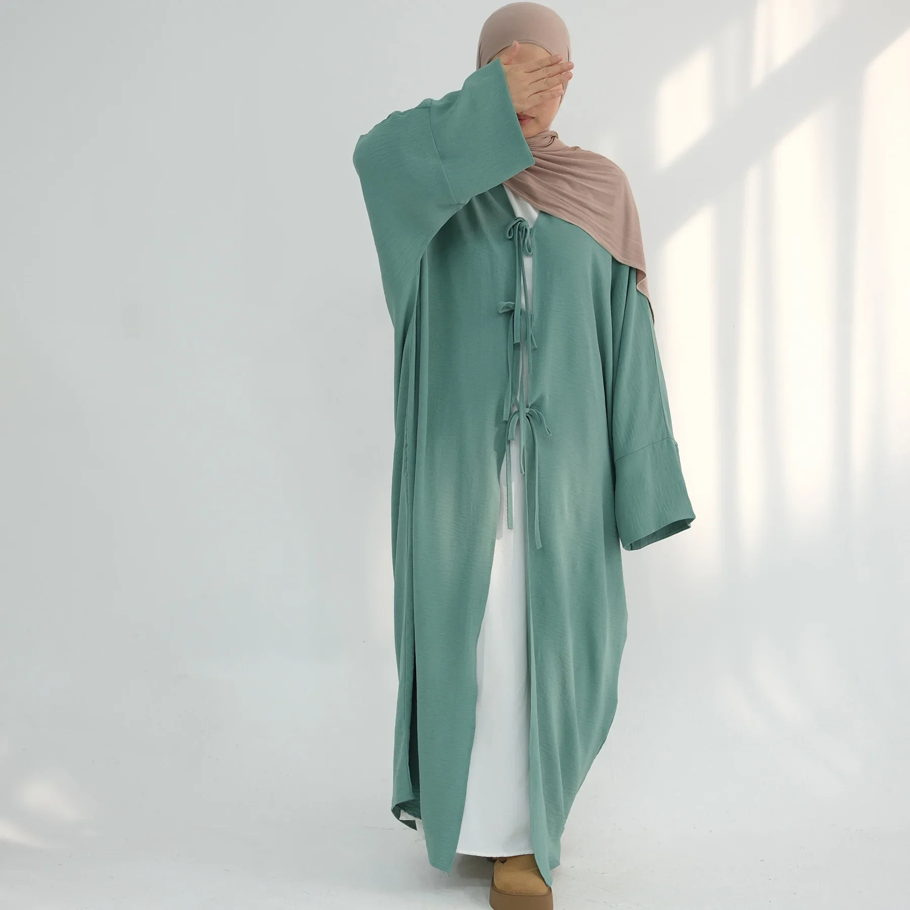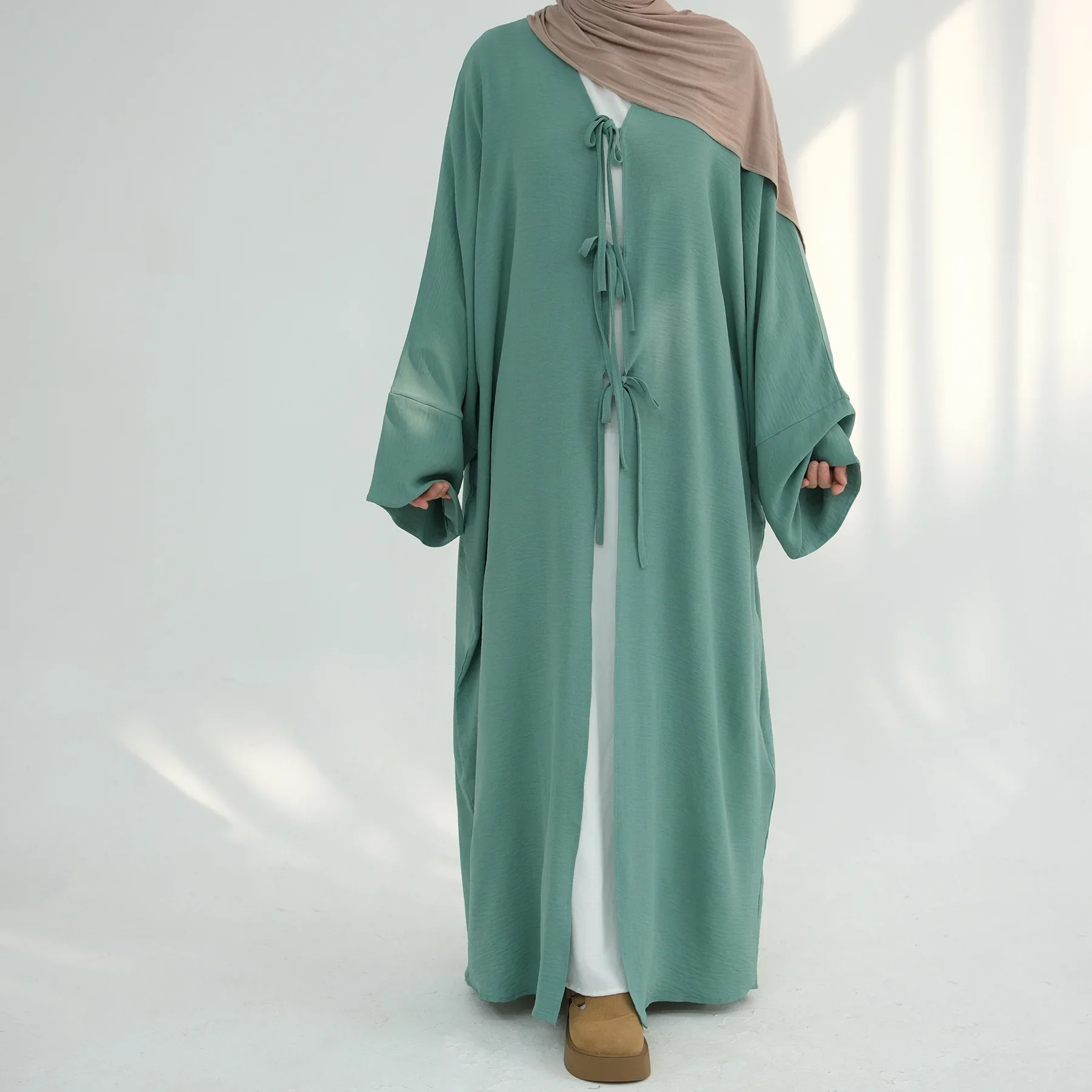 Eid Muslim Open Abaya Women Maxi Dresses Jalabiya Lace Up Vestidos Ramadan Morocco Dubai Abayas Kaftan Islam Arab Cardigan Robe