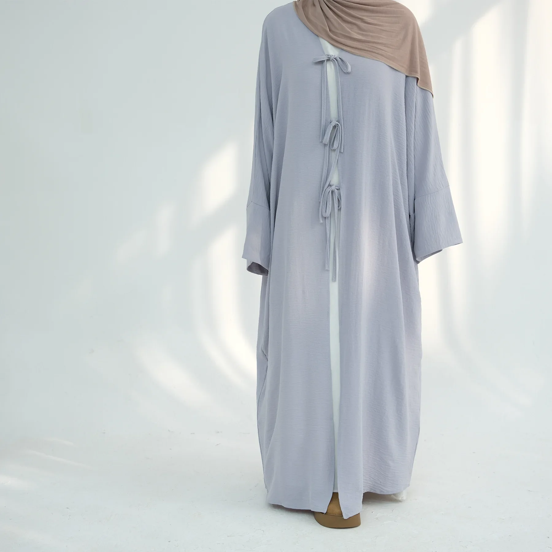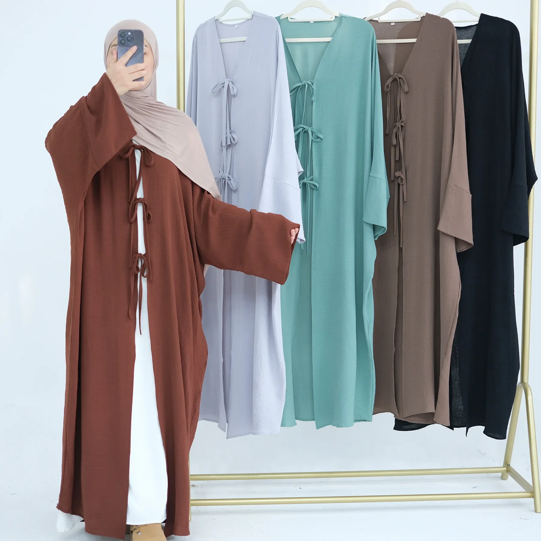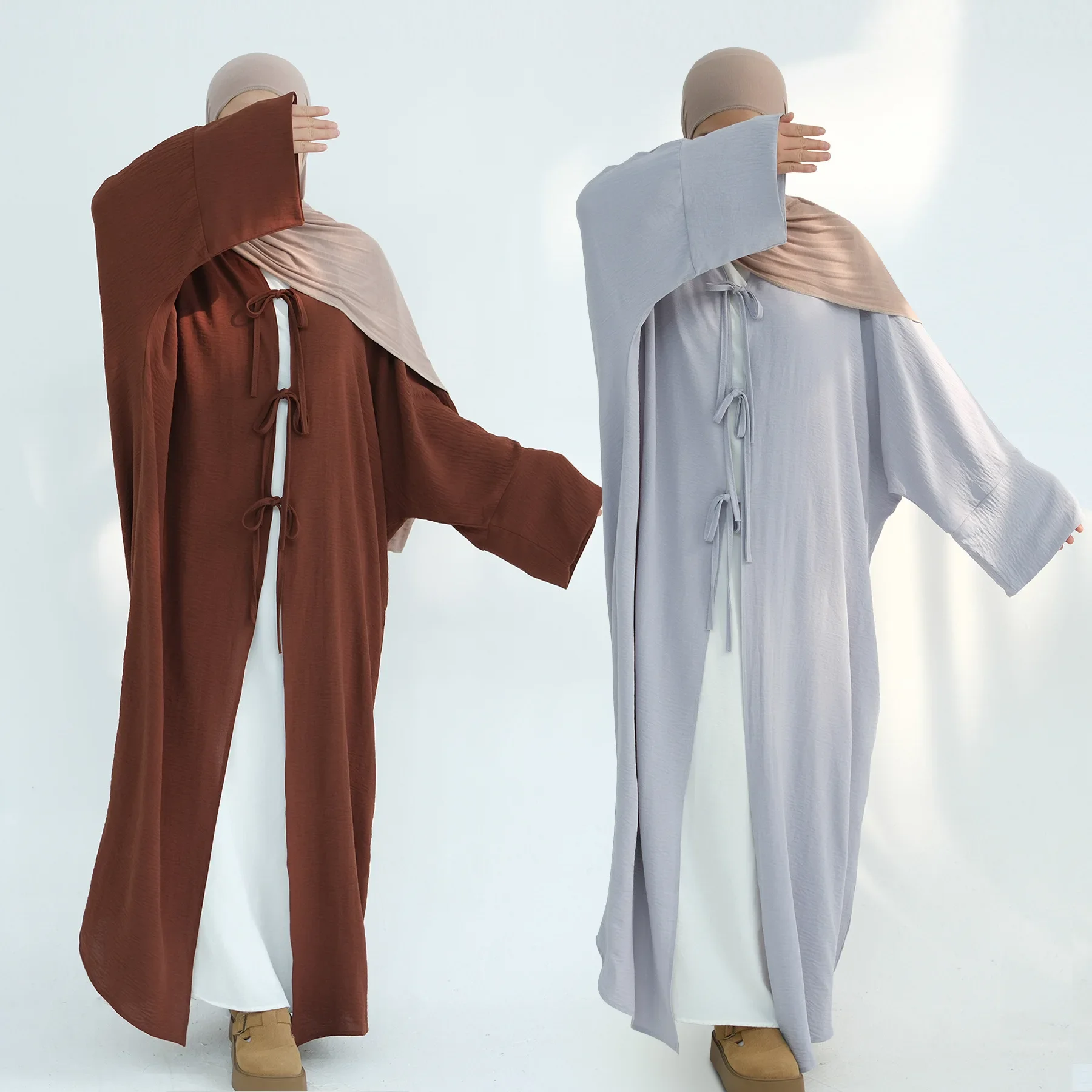 Eid Muslim Open Abaya Women Maxi Dresses Jalabiya Lace Up Vestidos Ramadan Morocco Dubai Abayas Kaftan Islam Arab Cardigan Robe