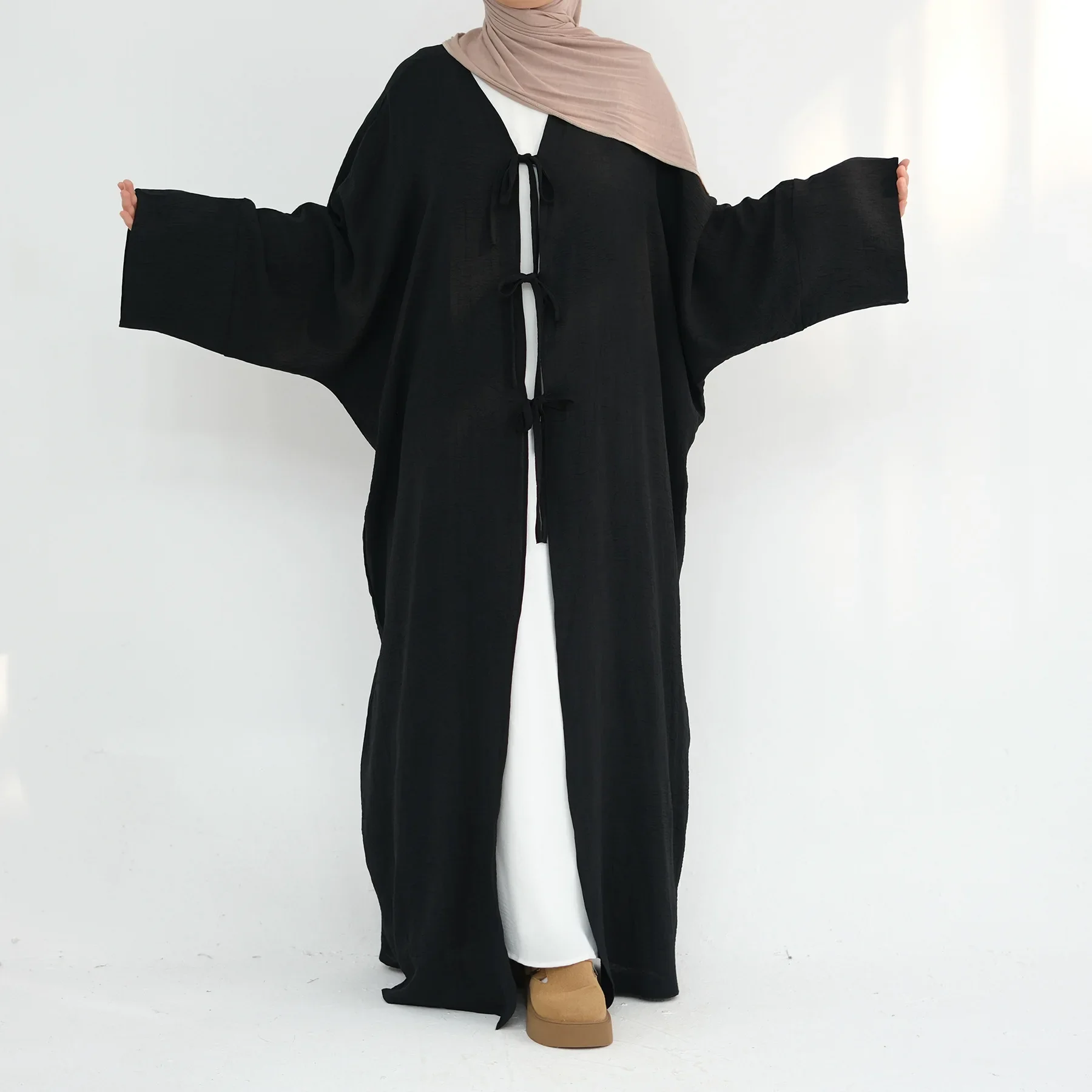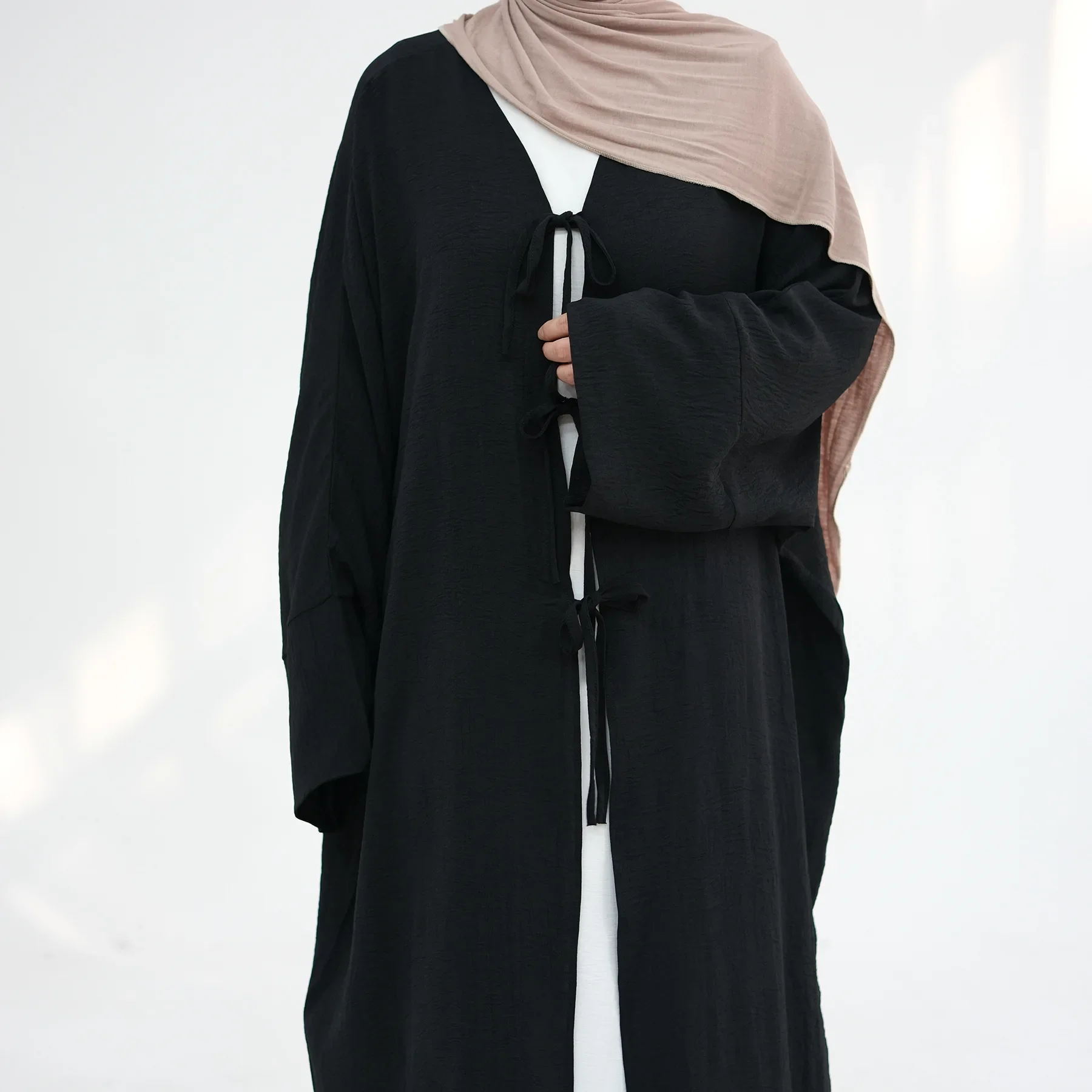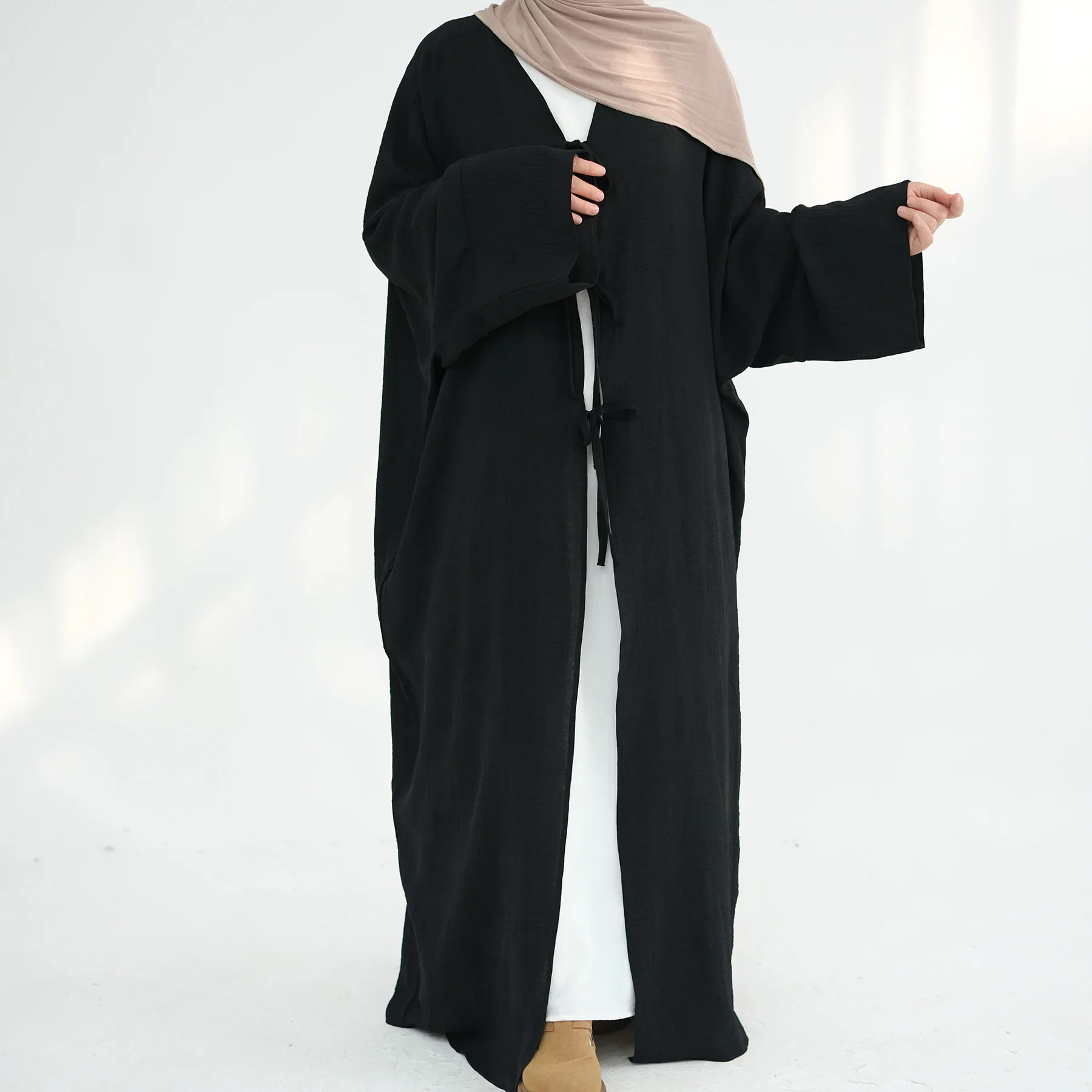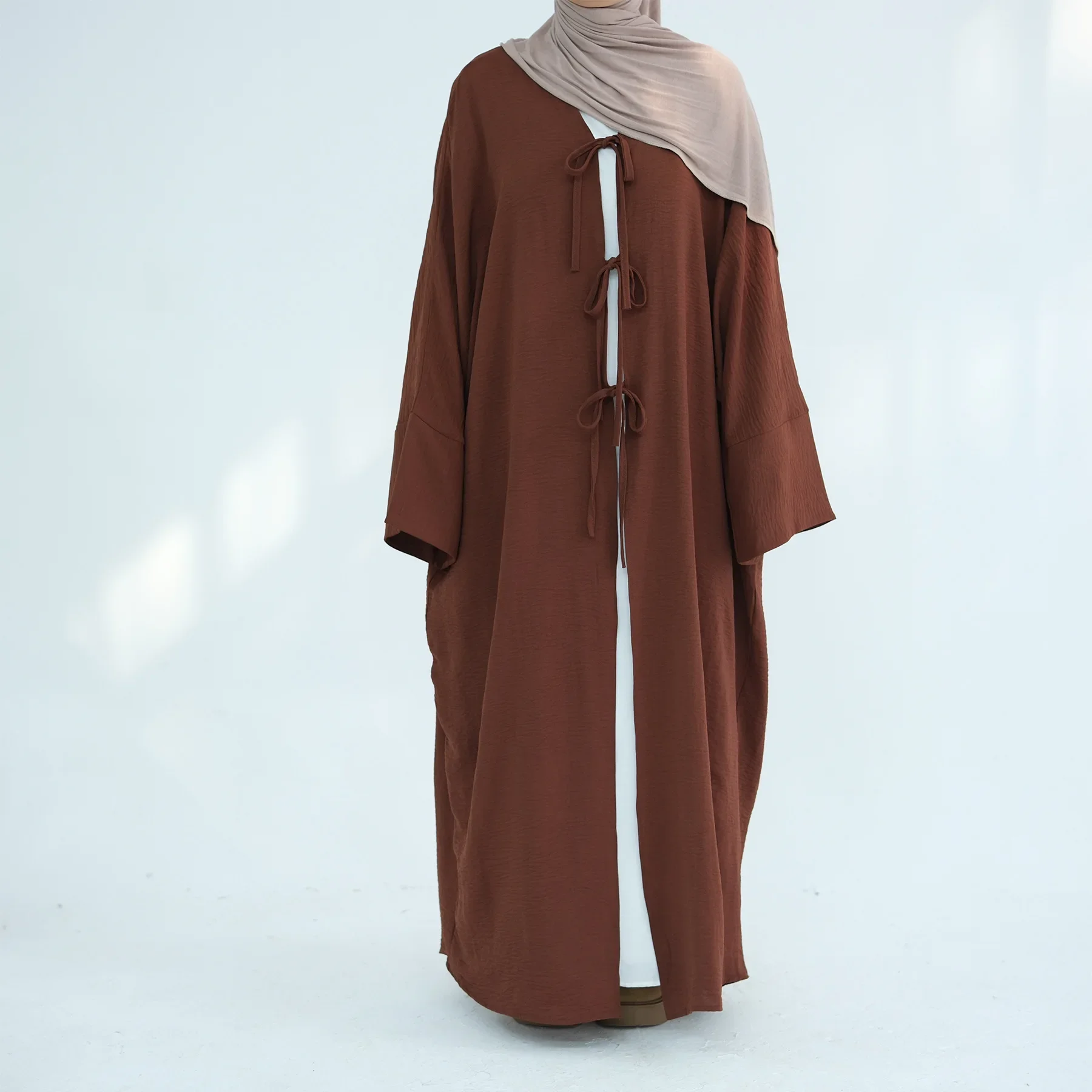 Eid Muslim Open Abaya Women Maxi Dresses Jalabiya Lace Up Vestidos Ramadan Morocco Dubai Abayas Kaftan Islam Arab Cardigan Robe