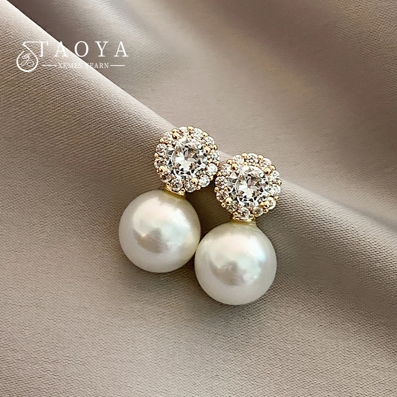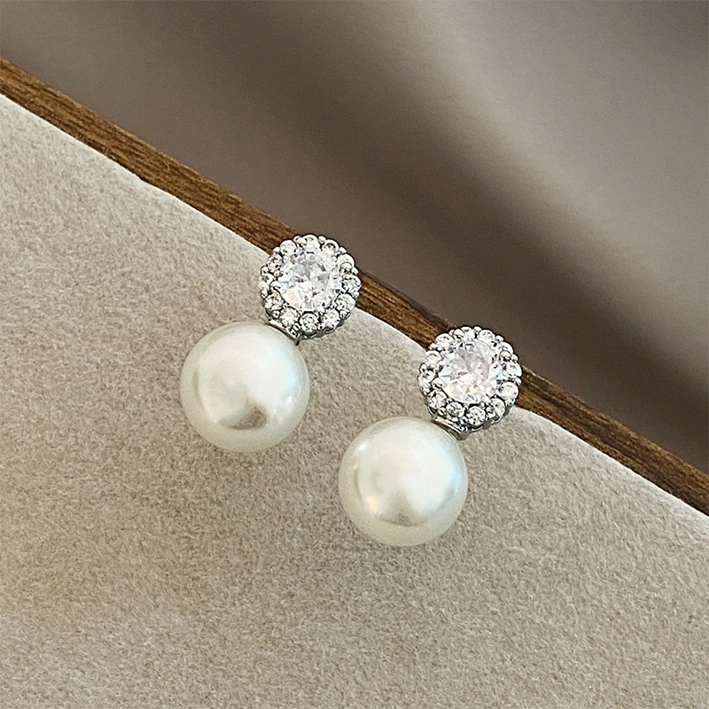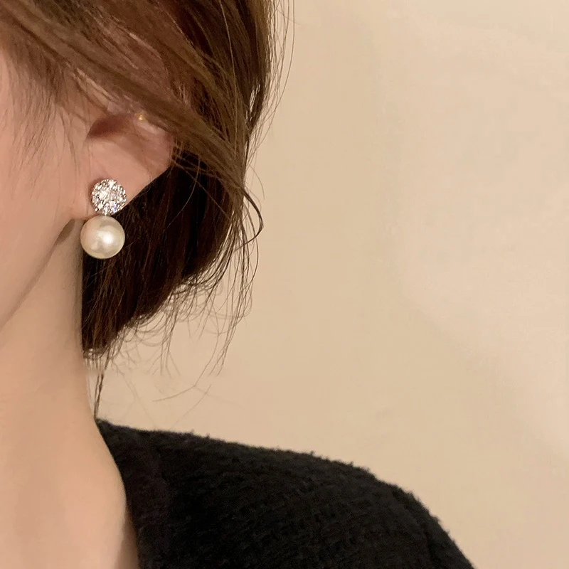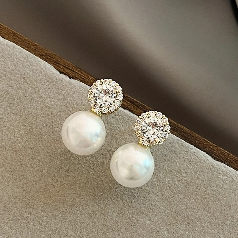 Girl‘s French Romantic Simple Inlaid Zircon Round Pearl Earrings 2025 New Fashion Jewelry Luxury Accessories for Women‘s Earstud
